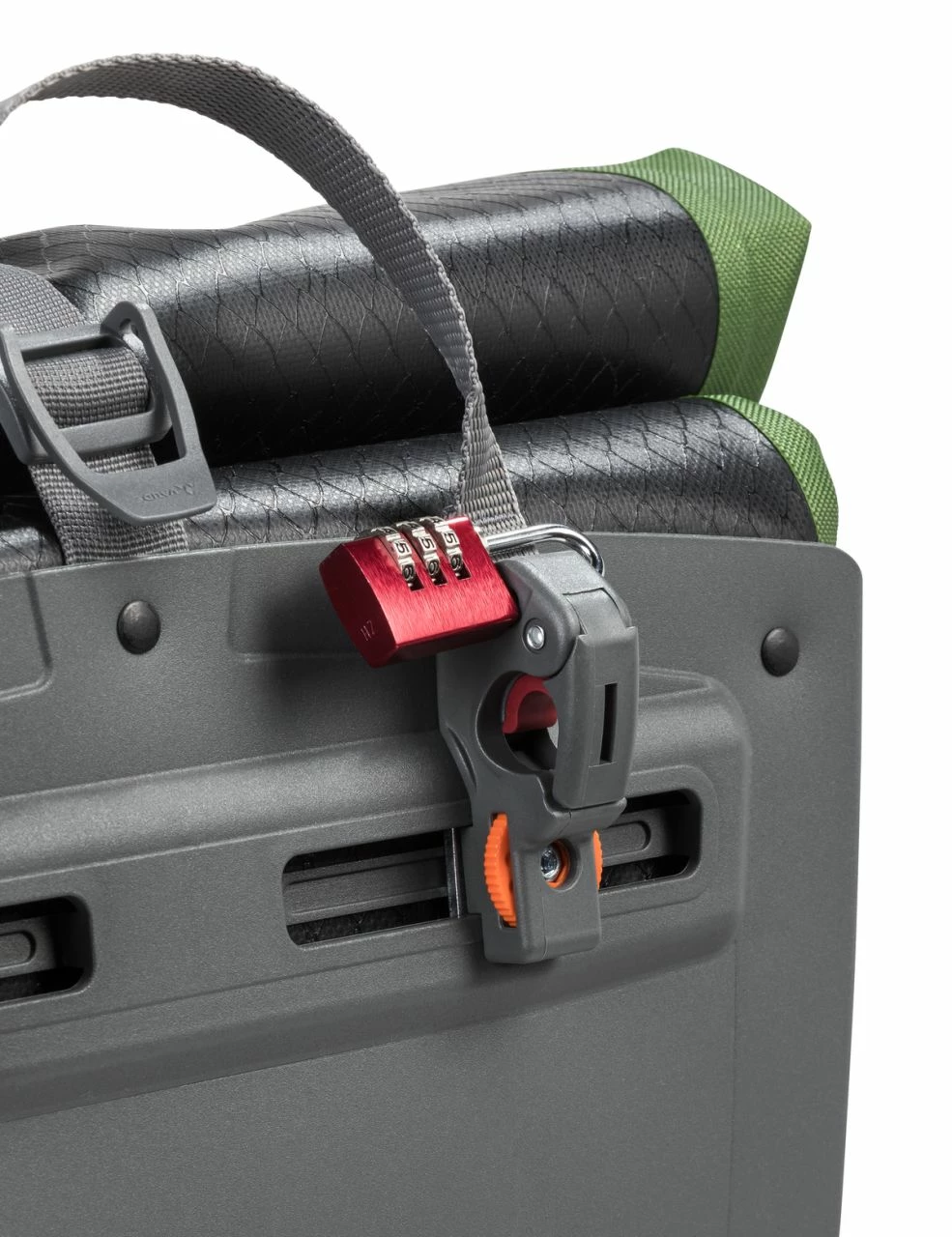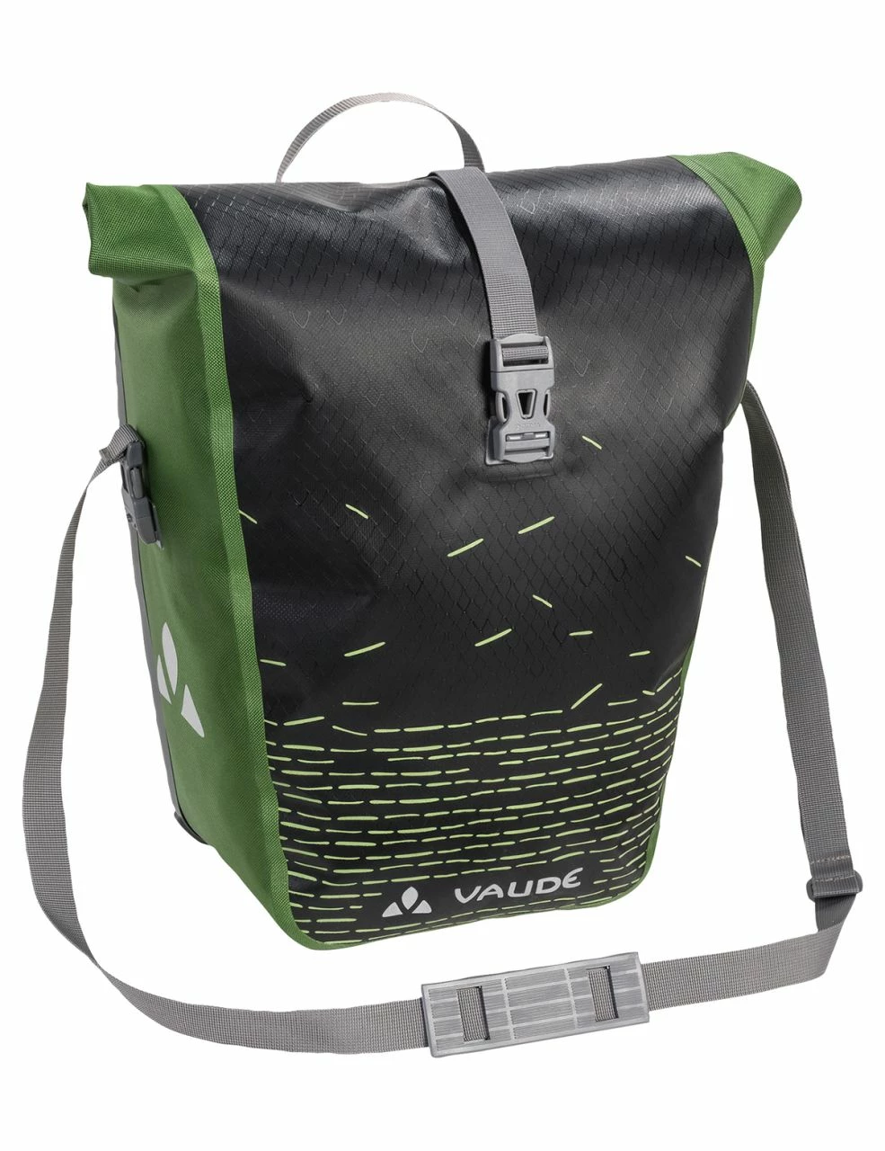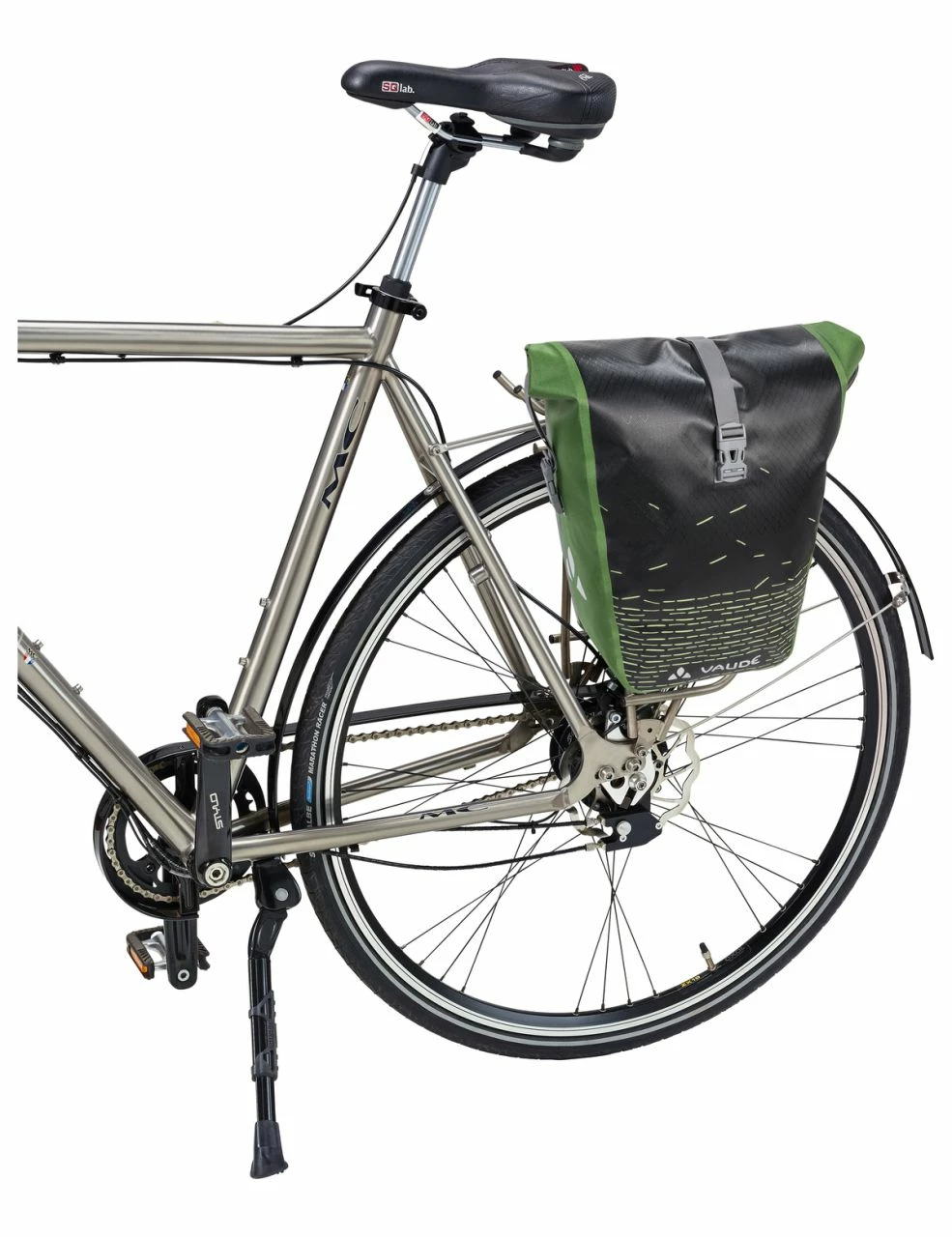 Partez à la découverte du monde ! Sacoche pour roue arrière, parfaitement étanche, avec imprimé discret, en matière robuste et sans PVC, fabriquée de manière climatiquement neutre sur le site allemand du siège de VAUDE près du Lac de Constance. Elle peut être ajustée à la taille souhaitée et rendue parfaitement imperméable à l’eau grâce à sa fermeture en papillote. Un sous-compartimentage permet une meilleure organisation. La sacoche cycliste est fixée grâce au système QMR 2.0 et à une plaque stable, à gauche et à droite du porte-bagage arrière. Elle est rapidement ajustable grâce à de petits boutons et peut être installée et enlevée facilement. Grâce à un simple cadenas, elle peut être attachée directement au crochet QMR. Avec des éléments réfléchissants. Ce modèle peut être combiné avec les sacoches accessoires pratiques : Toolbag Back, Sortyour Back, Addita Bag. Dans la livraison : 1 sacoche à fixer à gauche ou à droite sur le porte-bagages.