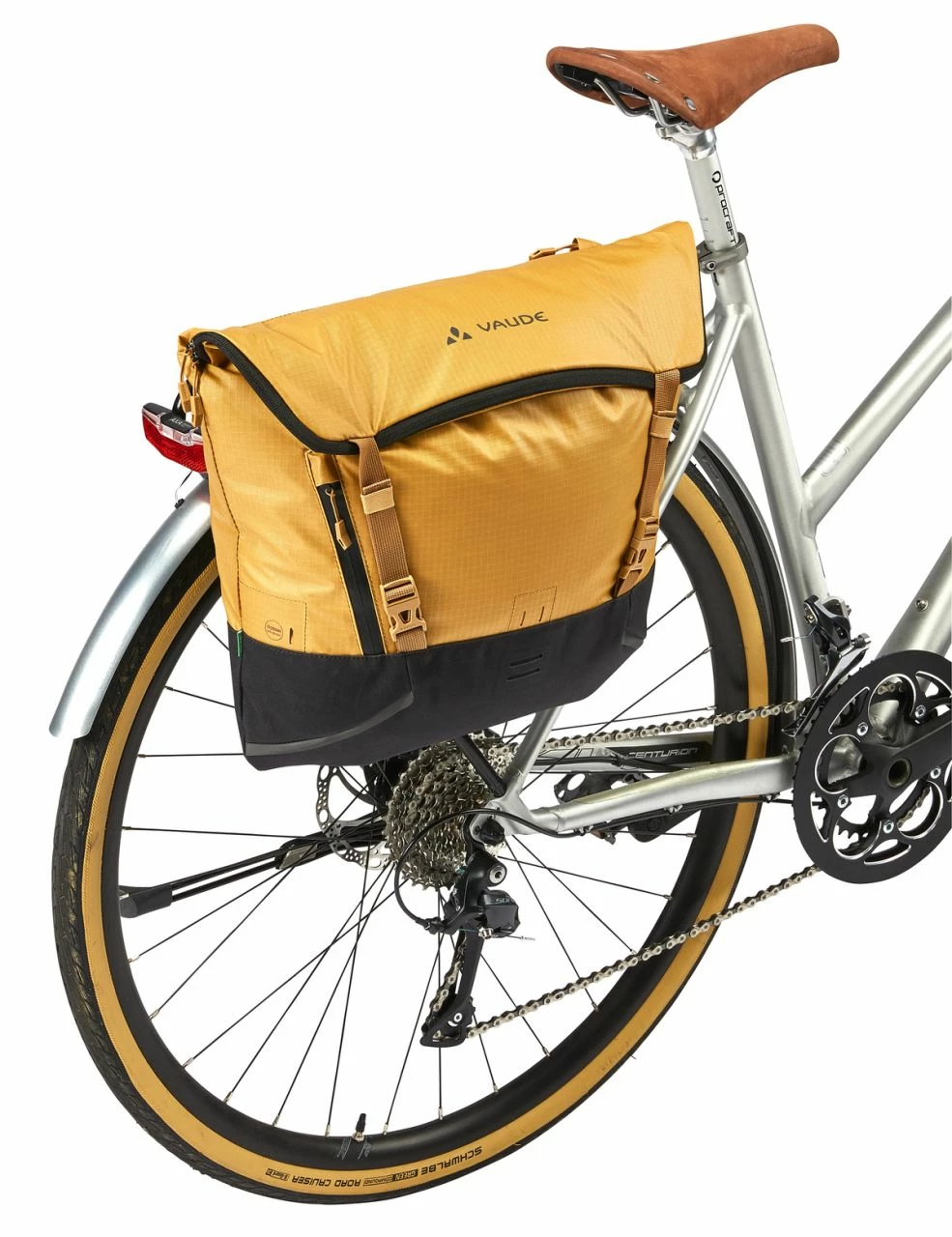 La sacoche de vélo CityMe Bike est le compagnon idéal des cyclistes de tous les jours et urbains pour leurs activités quotidiennes. Le sac pour ordinateur portable style sacoche de coursier peut passer du vélo à la main ou à l’épaule. Le compartimentage astucieux de son logement interne permet d’accueillir tous les autres accessoires indispensables au quotidien en plus d’un ordinateur portable 13,3 pouces : carnets de notes, pull de rechange, smartphone, clés, porte-monnaie, etc. Grâce au système de fixation QMR 2.0, cette sacoche de vélo avec fonction sac de coursier est bien accrochée à l’abri des soubresauts et peut se fixer et se défaire rapidement sans difficulté en cas de besoin. La fonctionnalité « LED ready » de la sacoche de vélo permet de la doter en outre du kit Light me up, un guide lumineux innovant pouvant être commandé en option et alimenté par une batterie externe courante. CityMe Bike constitue ainsi un sac modulaire polyvalent dédié à l’usage quotidien, qui s’avère particulièrement avantageux pour les trajets domicile-travail et dans un cadre urbain. Le label Green Shape de VAUDE garantit un produit écologique, fonctionnel et fabriqué dans des matériaux durables et en partie recyclés.