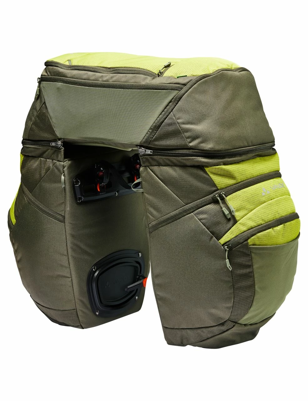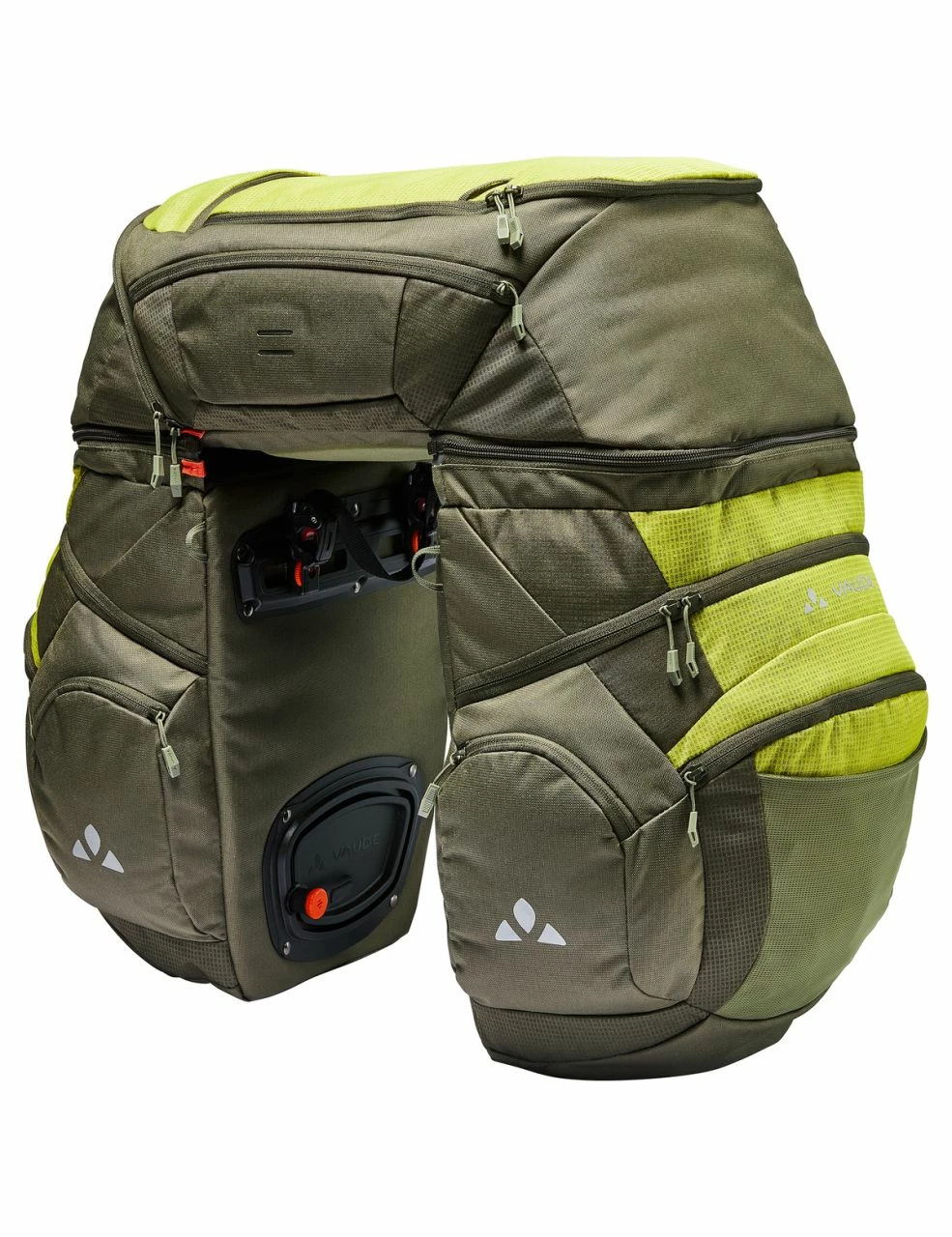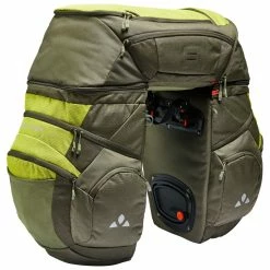 Les voyageurs à vélo qui privilégient une bonne organisation trouveront dans cette sacoche triple pour roue arrière au design exceptionnel l’équipement optimal pour des circuits sur plusieurs jours. Que tu explores un cours d’eau le long d’une piste cyclable pendant plusieurs jours ou que tu tentes un exploit sur la route du Karakorum, cette sacoche triple à l’équipement détaillé t’offre la meilleure organisation possible avec une capacité totale de 68 l. Les sacs latéraux présentent de larges ouvertures et possèdent chacun un compartiment frontal. Les poches externes appliquées offrent des possibilités de stockage complémentaires. La fixation au porte-bagages à l’aide des sacs latéraux équipés du système de crochet QMR 2.0 (adapté aux tubes ronds jusqu’à 16 mm de diamètre). Les sacs sont assemblés de manière stable par le biais d’une sacoche Top Case dotée de zips robustes facilement manœuvrables. Les 3 sacs peuvent s’utiliser séparément : un seul sac te suffit pour te rendre au bureau, les deux t’accompagneront lors de ta virée shopping du week-end et le kit complet t’offre une organisation impeccable sur un circuit allongé. La sacoche Top Case s’utilise comme sac à dos de jour ou de vélo pour un city-trip sans l’équipement complet grâce à deux bretelles légèrement rembourrées amovible. Elle porte une poche externe appliquée. Une fois les sacs entièrement installés, tu peux fixer une tente, un matelas isolant ou un sac de couchage sur le haut grâce au filet tendeur araignée clipsable. La housse de pluie protégeant tous les sacs est comprise dans la livraison. La matière principale des sacs est composée à 100 % de PET recyclé. La matière contrastée est fabriquée également à partir de polyester recyclé à 50 %. Les sacs bénéficient d’une finition durablement déperlante Eco Finish sans PFC. Un bon point pour toi comme pour l’environnement. Quelle que soit la distance de ton parcours, ton empreinte écologique sur la pédale demeure limitée grâce à ces sacs.