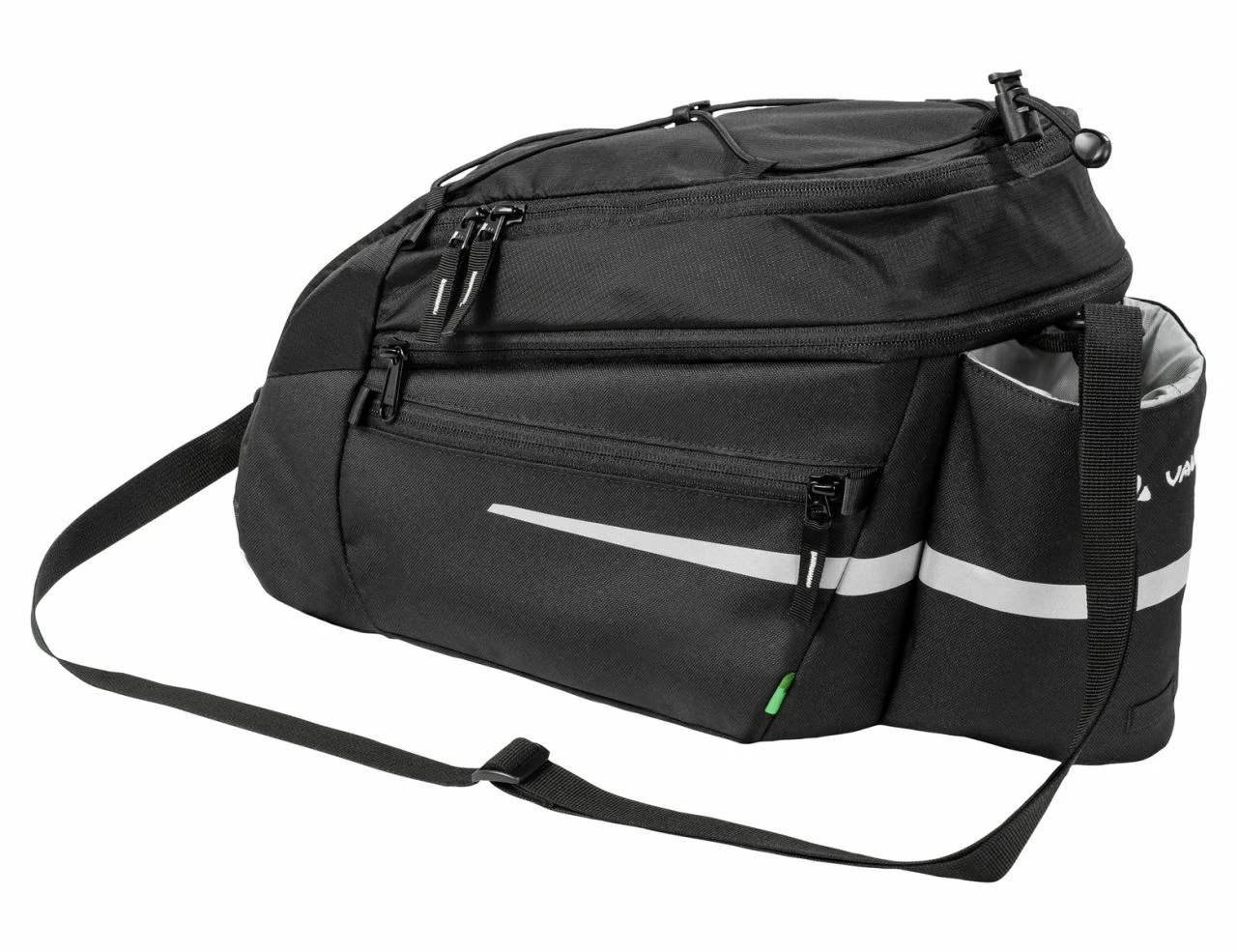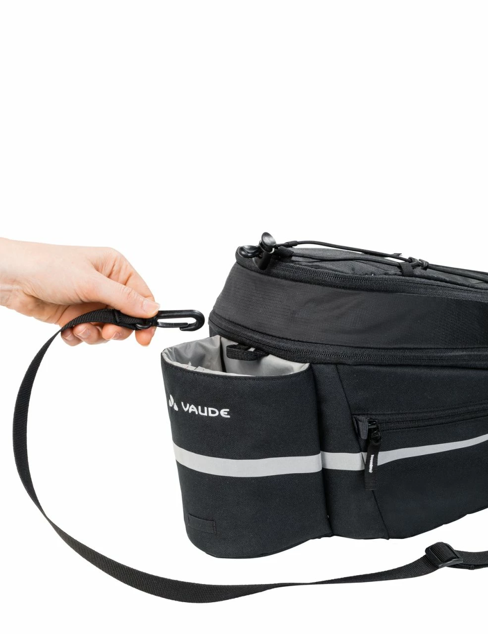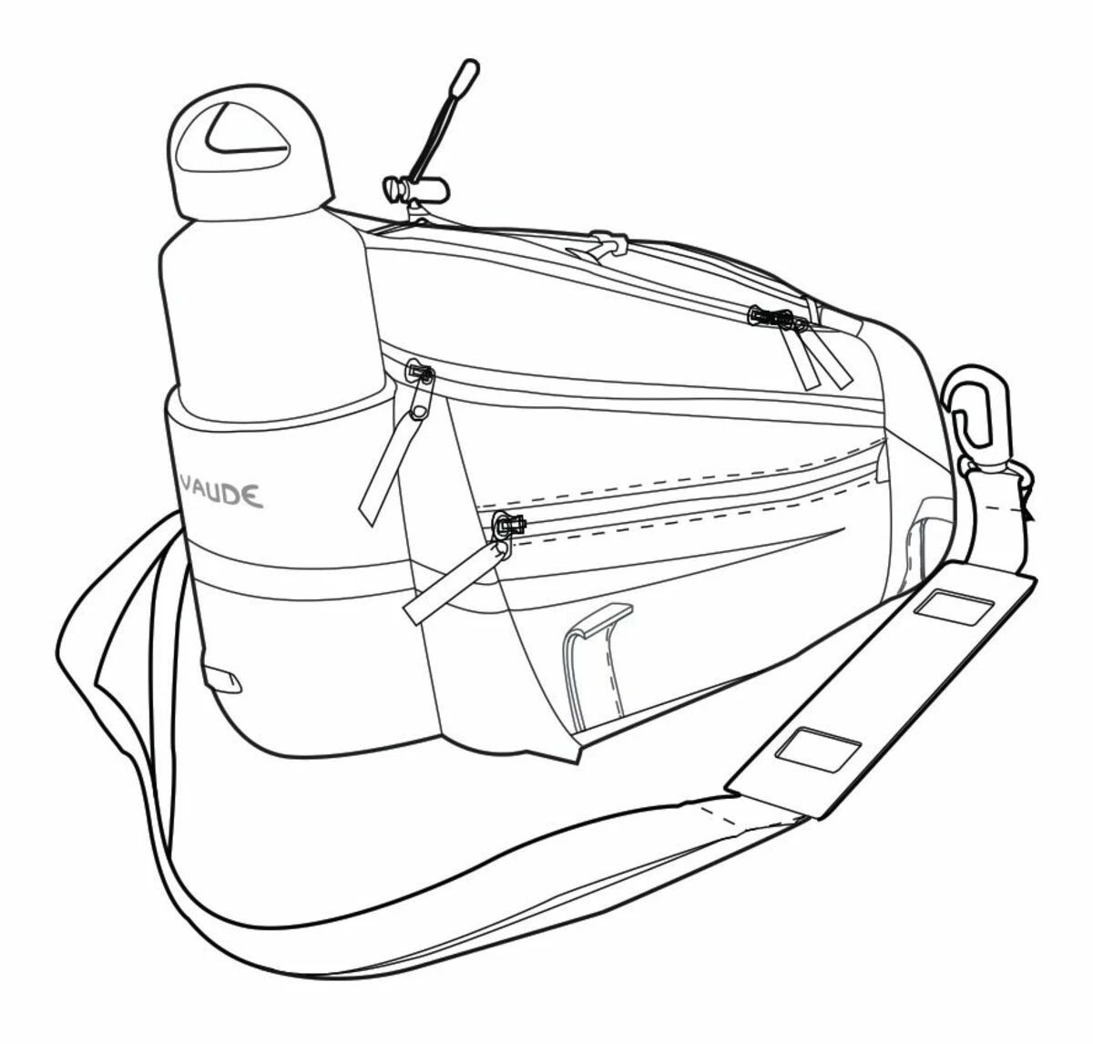 Porte vos bagages ! Cette sacoche pour porte-bagage avec une contenance de 9+2 litres et porte-gourde, peut être fixée sur le porte-bagage du vélo grâce à l’adaptateur Snap it. Cela permet de transporter notamment la batterie de votre vélo électrique. Grâce aux tendeurs, il est possible de transporter encore plus de bagages. Uniquement pour les porte-bagages Racktime.