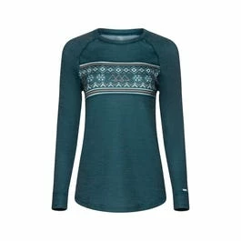 La construction à tricot double en mélange de polyester et de laine merino en fait un vêtement doux, chaud et respirant qui fournit un confort ultime. Le chandail est doté d’une coupe raglan avec un imprimé coloré sur le devant et des détails contrastants sur les coudes.